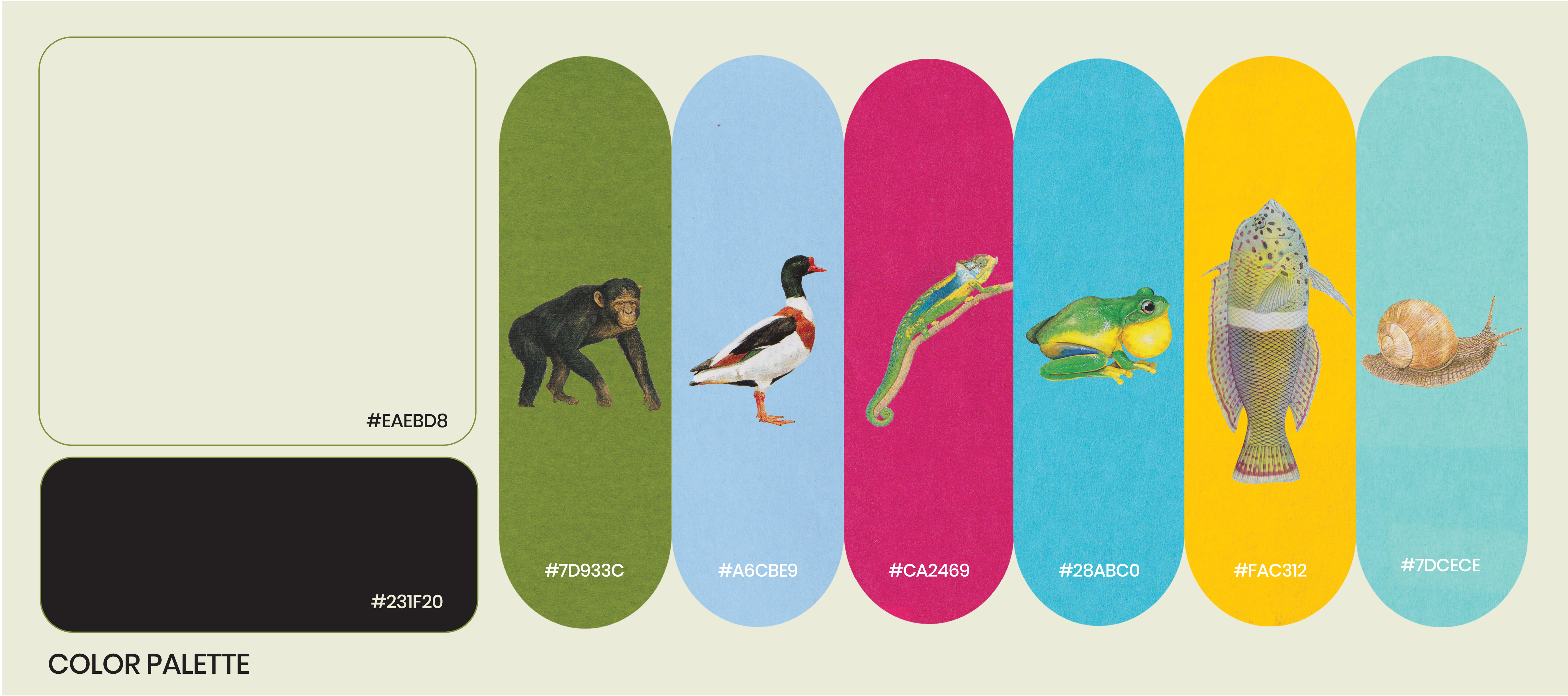 As a kid, I was obsessed with Nat Geo’s Encyclopedia of Animals. The book has these illustrations of all the animals that were so expressive, detailed and beautiful. But while the artwork was exceptional, the book’s overall design felt dated and bit chaotic and lacked color and rhythm. I wanted to reimagine it in a way that celebrated the illustrations while giving the book the visual energy it deserved.